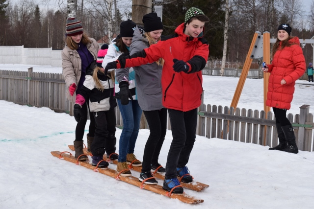 Koululle saavuttiin kello 7.45, pakattiin eväät reppuun ja menoksi, Pikku-Syötteelle koko koulun voimin! Matka kesti noin 2h kunnes saavuimmekin jo perille. Jokaiselle luokalle oli luvassa omaa ohjelmaa koko päivän ajaksi. 6.lk ja Erasmus-vieraat jaettiin kolmeen eri ryhmään. Ohjelmassa oli lumikenkäilyä, porotilalla vierailua sekä lumirakentelua. Lumikenkäily oli mukavaa ihanan talvisessa maisemassa! Porotilalla saimme tutustua vanhoihin tavaroihin sekä poroihin! Lopuksi joimme mehua, teetä ja kahvia sekä söimme pullaa ja keksiä. Lumirakentelussa jokainen sai tehdä mitä ikinä haluaa lumesta, lumiveistoksia, lumilinnoja, tunneleita... Pikku-Syötteeltä lähdimme takaisin koululle bussilla klo 16 aikoihin. Todella mukava päivä ja sain paljon uusia ystäviä!
