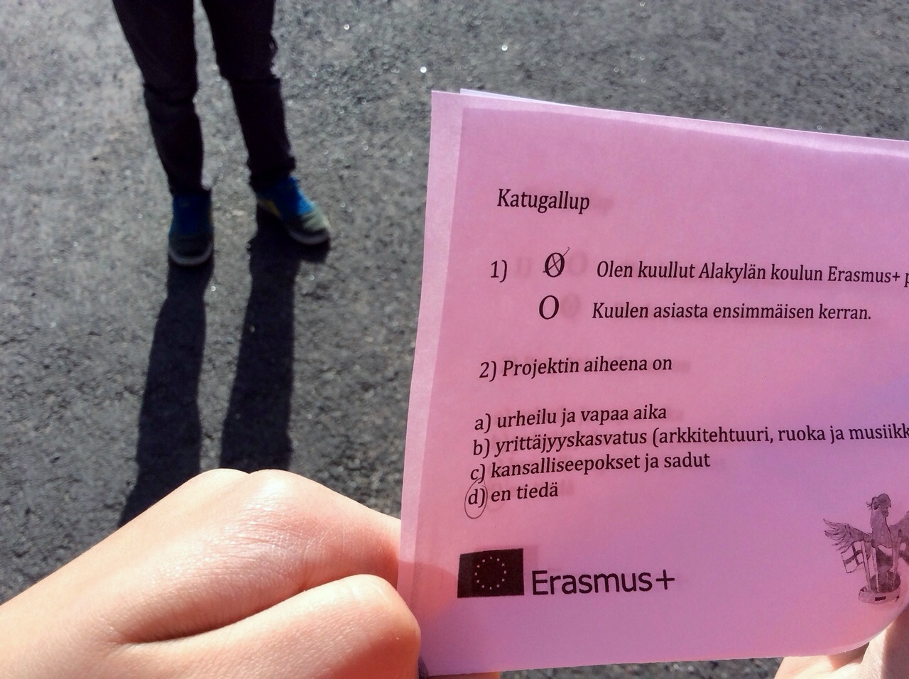 Perjantaina 8.4. kävimme Erasmus+ -vieraiden kanssa tutustumassa Ouluun. Menimme ensimmäiseksi Kiimingin kirkkoon, jossa meille kerrottiin paljon mielenkiintoisia asioita kirjosta englanniksi. Kun olimme käyneet kirkossa, lähdimme Yrityspuistoon, jossa kävimme kalatehdas Calastassa, Vaasan leipomossa sekä lovin tehtaalla. Sen jälkeen matkasimme bussilla Ideaparkiin syömään. Syönnin jälkeen kiertelimme ostoksilla Ideaparkissa. Pian päivä oli ohi ja palasimme koululle lukuun ottamatta eräitä, jotka jäivät bussista aikaisemmin, koska heidän kotinsa olivat matkan varrella.