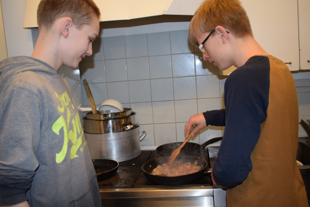 Tiistaina jaetut ryhmät vaihtoivat nyt paikkoja, makaronilaatikon kokanneet tulivat vuorostaan koululle ja mustikkapiirakan leiponeet läksivät Toivolaan. Toivolassa meidät jaettiin taas kolmeen porukkaan: ensimmäinen porukka alkoi koristelemaan pipareita ja kaksi muuta porukkaa alkoivat tekemään oman ryhmänsä Erasmus+ -kokkikirjan mainosta. Kun makaronilaatikkoa alettiin tekemään, jokainen sai jonkin oman homman jota tehdä yksin tai parin kanssa. Kun makaronilaatikko saatiin vihdoin uuniin, alettiin tekemään jälkiruokaa eli marjarahkaa sekä laitoimme astiat pöytään ja jokainen sai koristella vielä itselleen kaksi piparia. Viimeistelimme vielä mainoksemme ja juttelimme, opimme vieraistamme lisää ja pidimme hauskaa! Päivän päätteeksi esittelimme luomuksemme, söimme hyvää ruokaa ja kävelimme takaisin koululle. Päivästä jäi todella mukava mieli, sain paljon uusia ystäviä ja päivä oli muutenkin todella mukava!