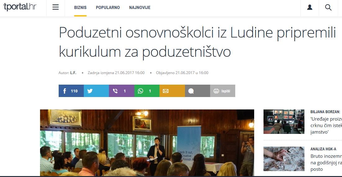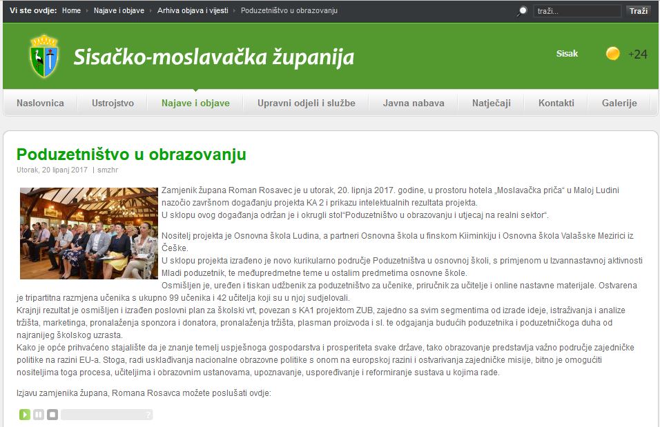 Uspješni primjer OŠ Ludina - vijesti iz županije